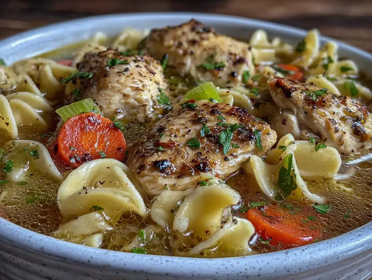 A warm, comforting chicken noodle soup made from scratch with rich homemade broth, tender chicken, fresh herbs, and perfectly cooked noodles. Perfect for chilly days and family gatherings.